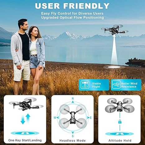 Mini Drone with Camera for Kids Adults-1080P FPV Camera Foldable Drone with Stable Altitude Hold, Gestures Selfie, Waypoint Fly, Auto-Follow, 3D Flip, One Key Start, 3 Speeds, 2 Batteries