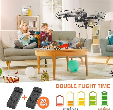 Mini Drone with Camera for Kids, Remote Control Helicopter Toys Gifts for Boys Girls, FPV RC Quadcopter with 1080P HD Live Video Camera, Altitude Hold, Gravity Control, 2 Batteries, Black
